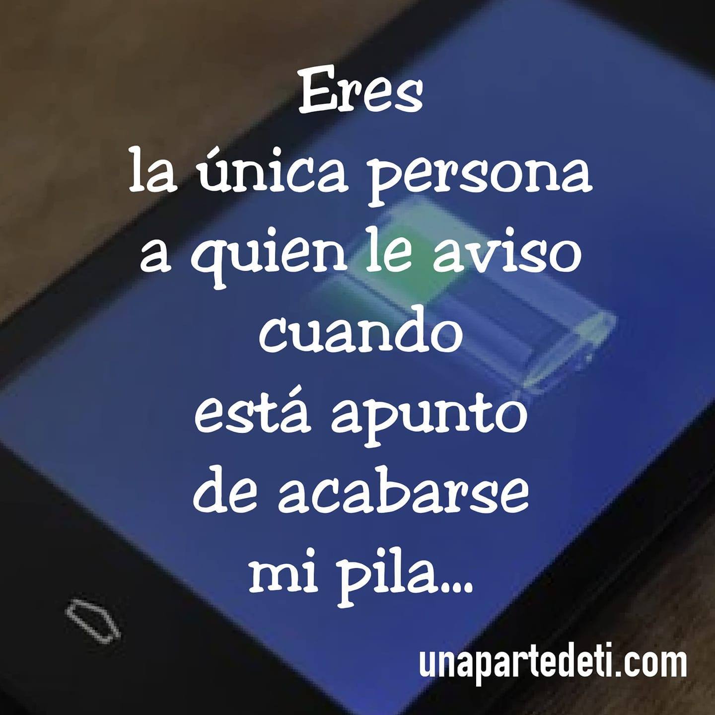 Eres la única persona a quien le aviso cuando está a punto de acabarse mi pila.... Una Parte de Ti Eres la única persona a quien le aviso cuando está a punto de acabarse mi pila, Eres la única persona que me entiende y conoce de verdad. Scroll infinito con AJAX y PHP Cargar más...