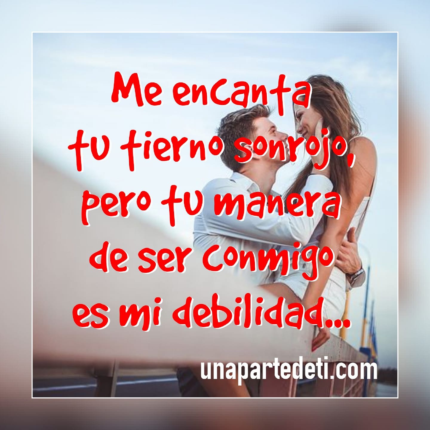 Me encanta tu tierno sonrojo, pero tu manera de ser conmigo es mi felicidad.... UnaParteDeTi Pensarás quizá, porque me sonrojo cuando la veo, porque se sonroja una mujer, porque se sonroja una persona, el amor es así. Scroll infinito con AJAX y PHP Cargar más...