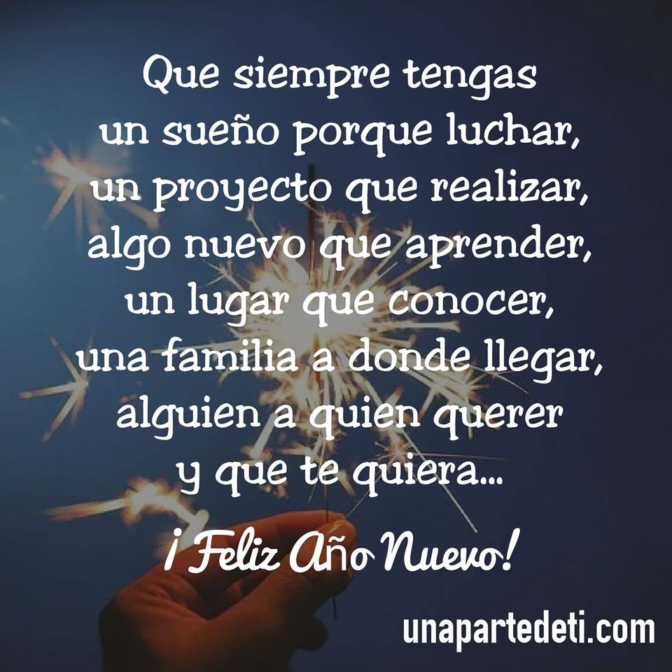 Que siempre tengas un sueño porque luchar, un proyecto que realizar, algo nuevo que aprender, un lugar que conocer, una familia a donde llegar, alguien a quien querer y que te quiera... ¡Feliz Año Nuevo!. Una Parte de Ti