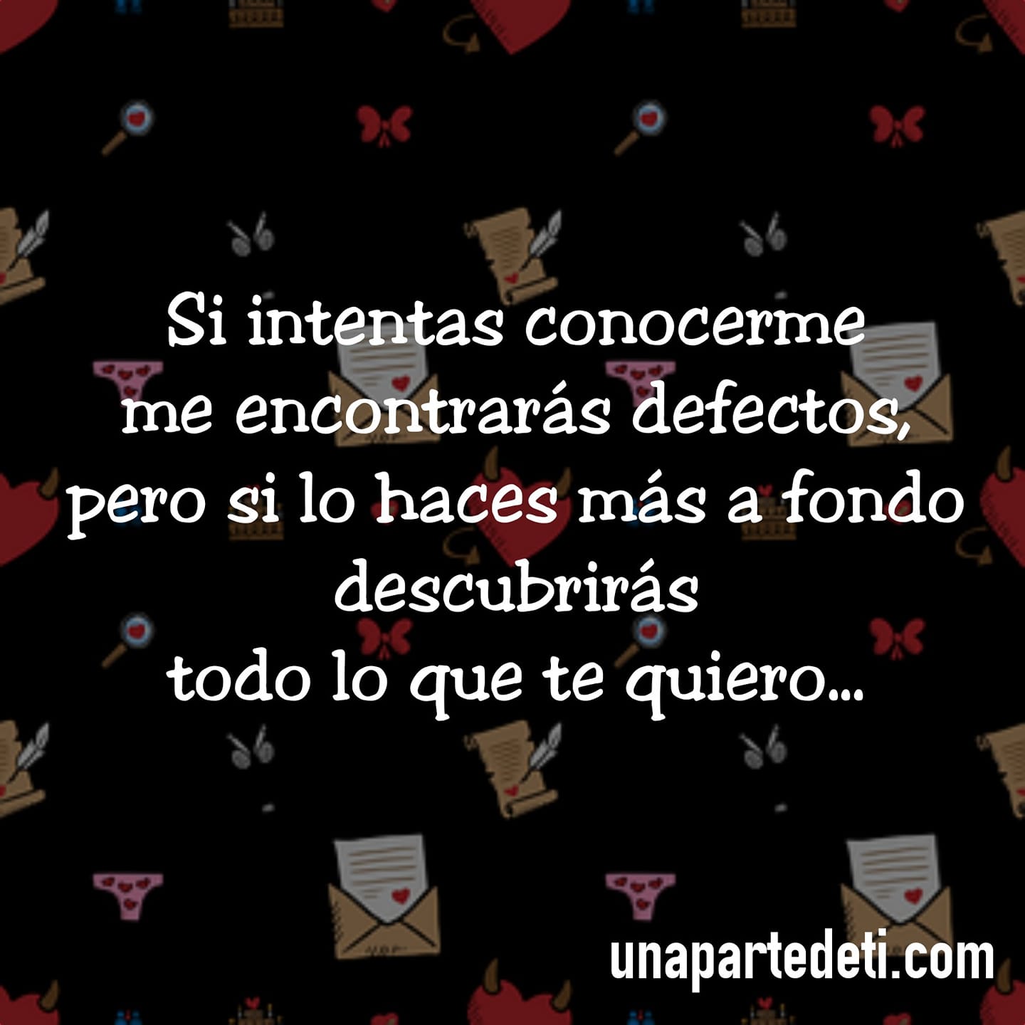 Si intentas conocerme me encontrarás defectos, pero si lo haces más a fondo descubrirás todo lo que te quiero, todo lo que te quiero.