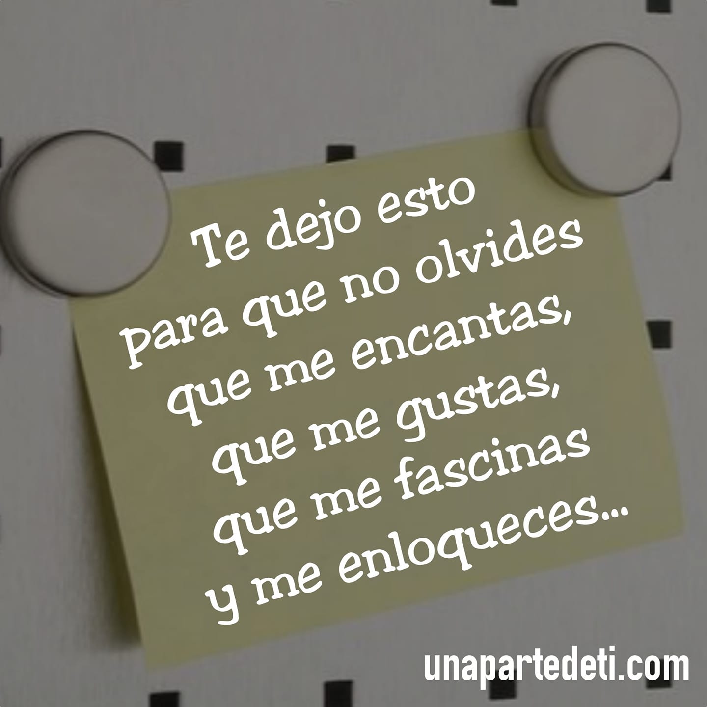 Te dejo esto para que no olvides que me encantas, que me gustas, que me fascinas y me enloqueces.... Una Parte de Ti Te dejo esto para que no olvides que me encantas, que me gustas, que me fascinas y me enloqueces, para que nunca lo olvides. Scroll infinito con AJAX y PHP Cargar más...